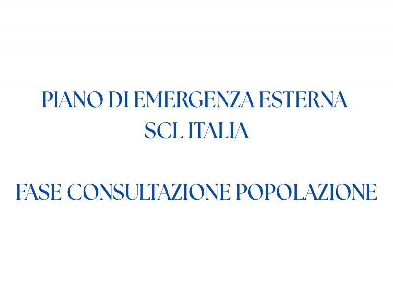 Si pubblica per la consultazione il piano di emergenza esterna della società SCL Italia. La cittadinanza, Enti o altri soggetti interessati possono presentare eventuali osservazioni, proposte o richieste.